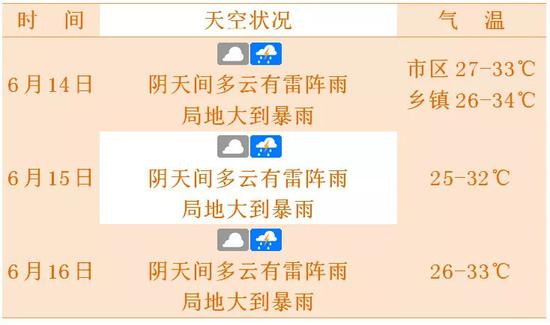 中部,多云有雷陣雨,局地大到暴雨,最低氣溫25-27度,最高氣溫33-35度。