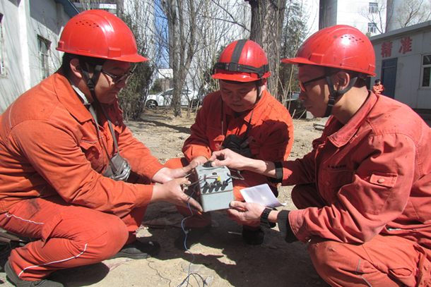 圖為運維人員在檢查避雷設(shè)施